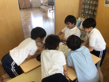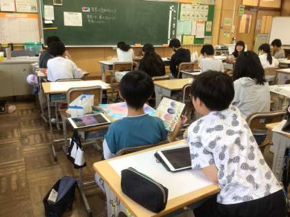 図工では、宮沢賢治の「セロ弾きのゴーシュ」で読書感想画を作成しています。場面を想像しながら下書きを描き、色塗りが始まりました。