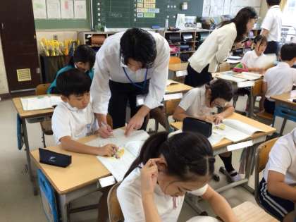 9/29(月)より2名の教育実習生が実習を行っています。今日、2人がそれぞれ担当学級で研究授業を行いました。すっかり学級にも慣れ、落ち着いた様子で授業行っていました。この3週間の実習が、今後に生きることを願っています。