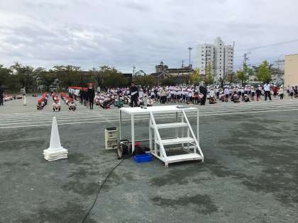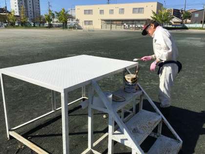 運動会を前に、校内整備員の岩崎さんが朝礼台に白いペンキを塗ってくださいました。雨風による痛みを防ぐためにシートをかけてはいましたが、白く塗り直したことで見た目も明るくなりました。運動会で多くの児童が注目する朝礼台がきれいになり、気持ちよく使えるようになりました。日頃から学校の環境を整えてくださりありがとうございます。