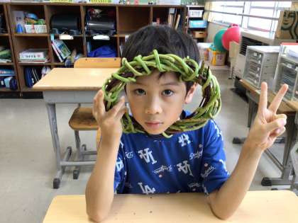 オアシスでは、先日収穫したさつまいものつるを使ってクリスマスリースの製作を始めました。リースの形になるように、つるを巻きつける作業では、集中して一生懸命に取り組む姿が見られました。つるを巻きつける工程を繰り返して、満足いく形が出来上がったときには、「見てー!」と嬉しそうに教えてくれました。飾り付けをして素敵なリースが出来上がるのが楽しみですね。