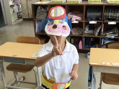 また、交流学級での学習も頑張っています。図工の授業で猫に変身する装備を作った児童は、「へーんしん!」と言いながら教室で友達に披露していました。