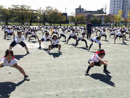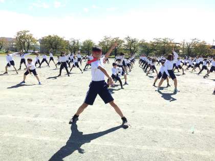 運動会に向けて、高学年のソーランの練習が始まりました。5年生は6年生に振り付けを教えてもらいながら、一つ一つの動きを真剣に覚えています。6年生の丁寧な指導のおかげで、どの子も一生懸命体を動かし、形になってきています。先頭で踊るソーランマスターは、堂々とした動きでみんなを引っ張る頼もしい存在です。これからの練習で、さらに息の合った踊りになっていくことを楽しみにしています。