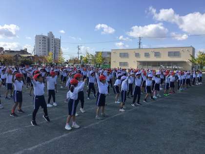 運動会の練習も2週目に入り、どんどん完成度が高まってきています。今週からは運動場での練習になり、今日も自分の位置を覚えたり隊形移動をしたりと一生懸命に話を聞いて動く姿が見られました。