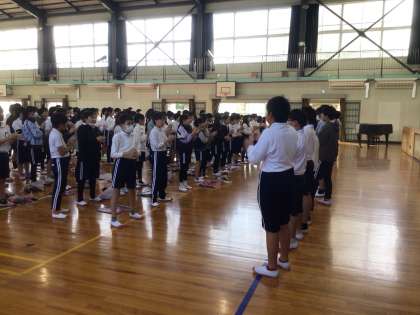 6年生は運動会本番に向けてソーラン節やミッションリレー、騎馬戦の練習を頑張っています。今回は応援団を中心に応援練習をしました。大きな声と手拍子で、運動会を盛り上げようとする応援団の気迫が6年生の心に届いたと思います。運動会当日は競技種目だけでなく、応援団や選手宣誓など様々な場面で活躍する子どもたちの姿をぜひご覧ください。