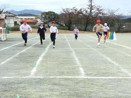 3年生の徒競走練習の様子です。当日は、徒競走時のみ、ゴールの目の前に保護者撮影席を用意します。お子さんの走順に合わせて入れ替え制としますので、ぜひご利用ください。