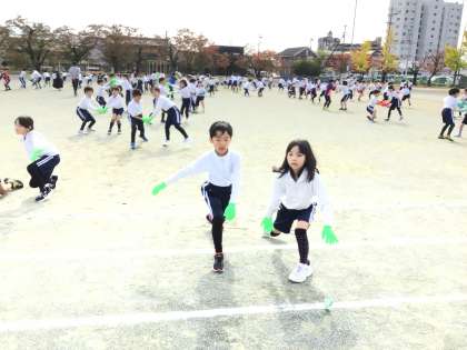前小ワルツは、初めて踊る3年生も動きがそろってきています。9月の今月の歌として、毎日お昼の放送で流れていたこともあり、どの学年の児童もメロディや歌詞に馴染みがあります。当日は隊形もいろいろ変わり、最後はトラック上で大きな円になります。学年通信や後日配付するプログラムで、お子様の場所をご確認ください。