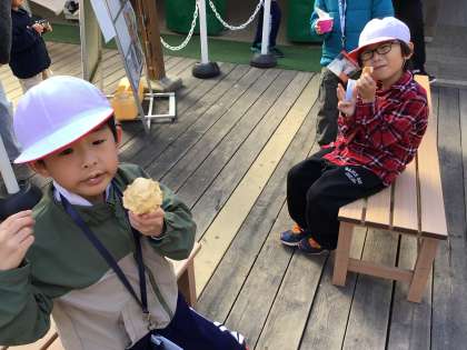 また、買い物体験では、自分の財布からお小遣いを取り出して、ソフトクリームなどを購入しました。「ソフトクリームはおいしい!」と笑顔いっぱいでした。