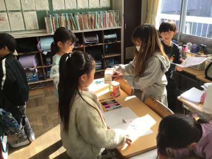 1年生を教室に招待して、おもちゃまつりを行いました。かっこよく説明している姿は、まさにお兄さん、お姉さんでした!おもちゃで1年生が喜んでいる姿を見て、とてもうれしそうでした!!