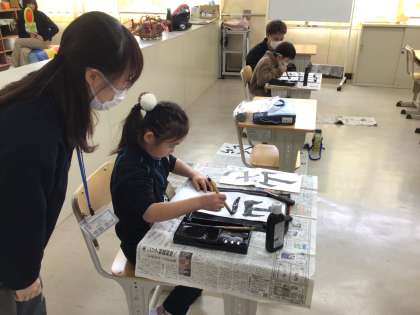 学校公開日 校内書き初め展