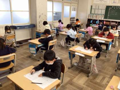 冬休みが明けて、1週間ほど経ちました。寒い中ですが、子どもたちは毎日元気に学習に取り組んでいます。今日は国語の学力検査がありました。時間いっぱい集中して取り組む様子が見られました。明日は算数の学力検査があります。今まで身につけた学力をしっかり発揮できるといいですね。