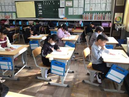 先週の14日15日は、国語と算数の学力検査を実施しました。いつものテストとは少し違う問題に苦戦しながらも、時間いっぱい問題に取り組む姿が見られました。(1枚目)