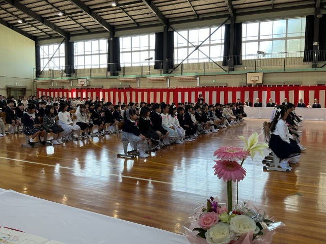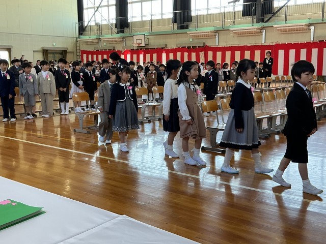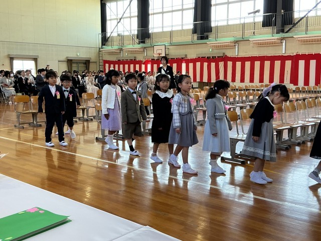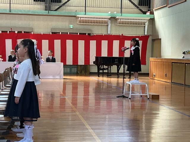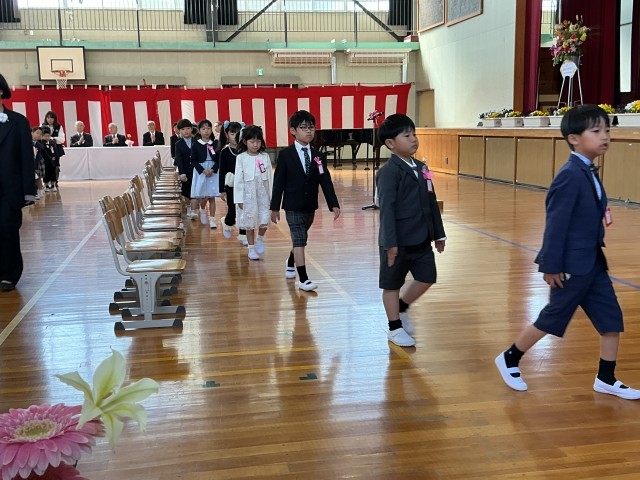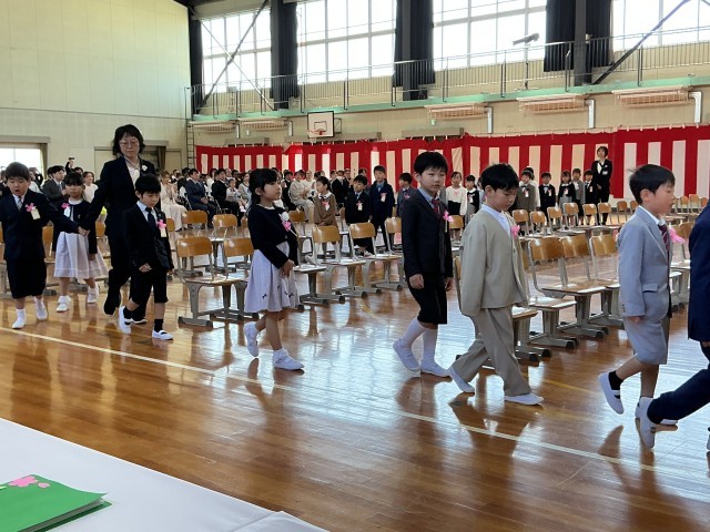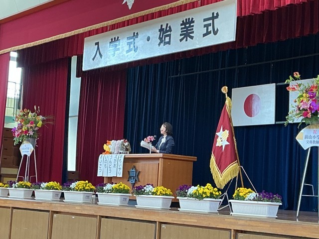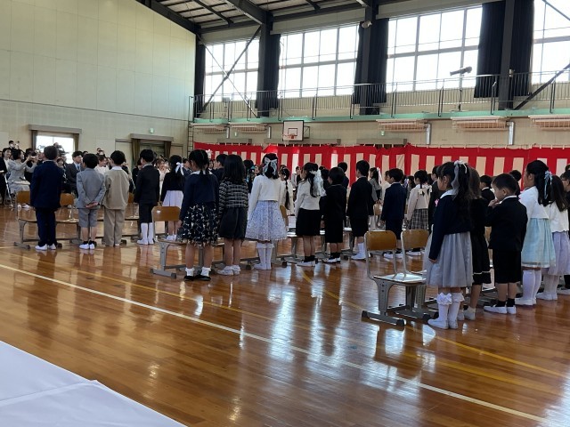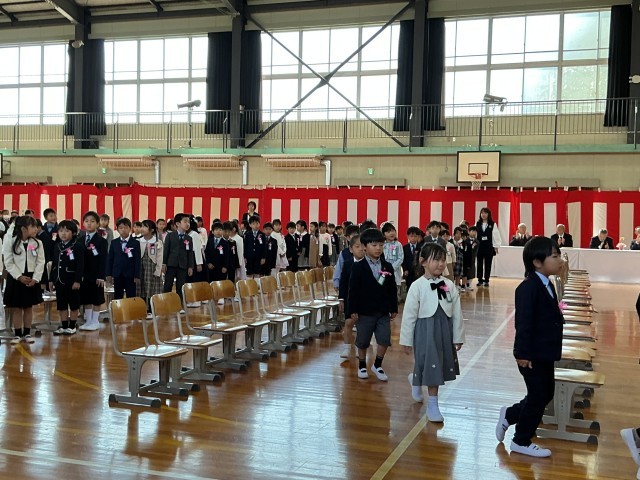 本日、豊田市議会議員の北川様、各自治区区長様、父母教師会会長赤崎様を来賓にお招きし、第76回入学式が行われました。6年生のお兄さん、お姉さんと手を繋いで入場する姿がとても微笑ましく、和やかな雰囲気で式が始まりました。6年生の代表児童の歓迎の言葉もとても素敵な内容でしたが、真剣な眼差しで代表児童の話を聞く新入生の姿もとても立派でした。前山小学校には素敵なお兄さんやお姉さんがたくさんいます。早く小学校生活に慣れ、いろいろな出会いを通して楽しい毎日を送ってほしいと思います。