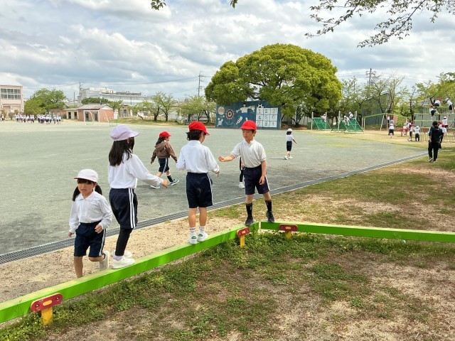2年生から、長い休み時間に運動場や遊具を使用して遊ぶことができるようになりました。そのため、体育の時間に遊具の使い方や友達と仲良く譲り合って遊ぶことについて学びました。学んだあとは、目一杯遊び、はじけるような笑顔がたくさん見られました。