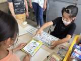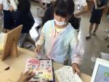 図書館祭りの抽選で当選した子どもたちが、図書の貸し出し体験を行っています。図書...