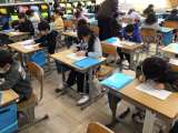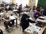 今日から学校が始まりました。2、3時間目は書き初め大会でした。どの子も一生懸命...