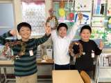 先日、生活科で昔遊びを行いました。けん玉、こま、あやとり、お手玉、たけっぽくり...