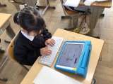3年生の様子です。キーボードで入力する練習をしていました。タブレットの画面に出...