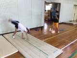 体育の授業で、体育館ではマット運動を行っています。教科書で技のポイントを見たり...