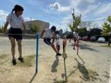 1年生 図画工作科「ひらひらゆれて」と体育科「とびばこあそび」の様子