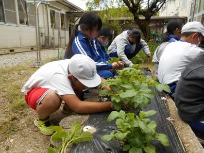 ジャガイモの芽が出て大きくなってきました。ここで、芽かきをして、芽を3本ぐらいにします。芽をかくことが大丈夫なのか心配になってきましたが、教えてもらったように作業をしました。みんな上手に芽をかくことができました。