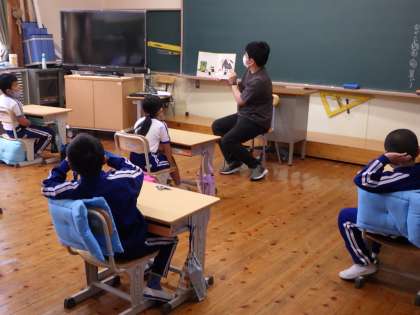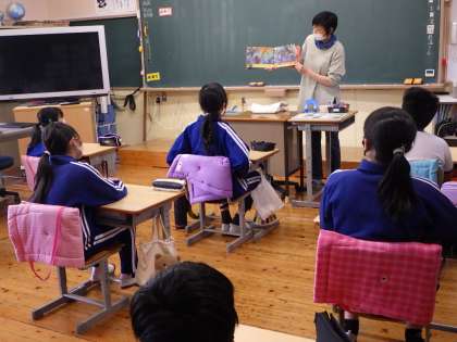 距離をとっての読み聞かせ会となりました。低学年は浅井先生、中学年は司書さん、高学年はボランティアさんに本を読んでいただきました。本の世界に感じ入るよい時間でした。
