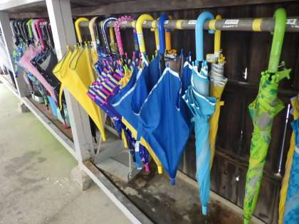 今日は雨です。明和小学校には2つの池があります。子どもたちは池にいる生き物も大すきです。以前から見守ってきた「小さなオタマジャクシ」が一斉に「小さなカエル」に孵りました。雨の中を飛び跳ねるカエルを見て子どもたちから歓声が上がります。