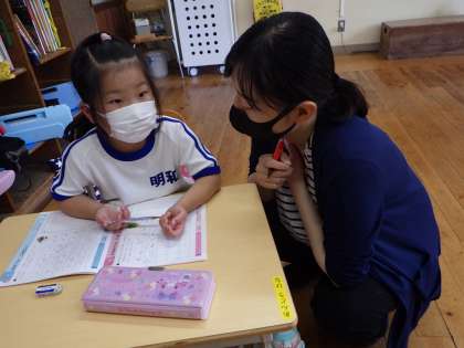 「わがままばかりしているとどうなるのかな」ということを『かぼちゃのつるが』というお話から考えました。泣いているかぼちゃを見て周りのどうぶつはどう思ったでしょう…。「かわいそう」「わがまましないとよかったね」など、やさしい意見が出ました。