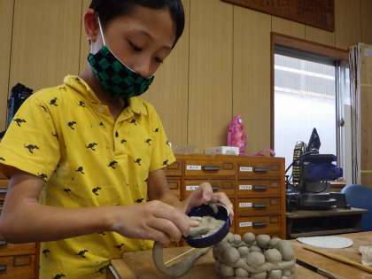 6月17日 3・4年図工で土器づくり 公開日 2021/06/17 更新日 2021/12/27 各学年から ひもとだんごを組み合わせて土器をつくりました。丈夫に接着するためにどべを塗りました。釉薬の色見本を見て、作品につけたい色を選びました。焼き上がりが楽しみです。