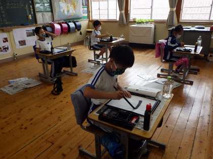 6月18日 3・4年書写の授業 公開日 2021/06/18 更新日 2021/06/18 各学年から 3年生は「土」、4年生は「雲」を練習しています。一画一画、筆をゆっくり動かし、ていねいに書けました。