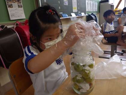6月21日 1・2年生活科「梅シロップ作り」