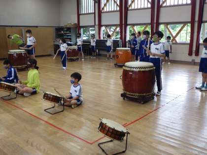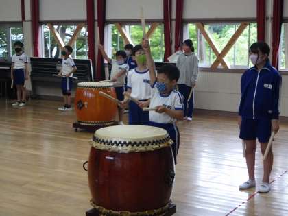 6月22日 太鼓の練習 公開日 2021/06/22 更新日 2021/06/22 各学年から 太鼓の練習では基礎打ちをしました。8拍と16拍を繰り返したり、半々に分かれて合わせたり、リズムの重なりを楽しみました。