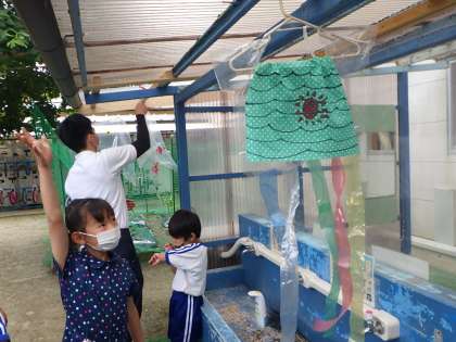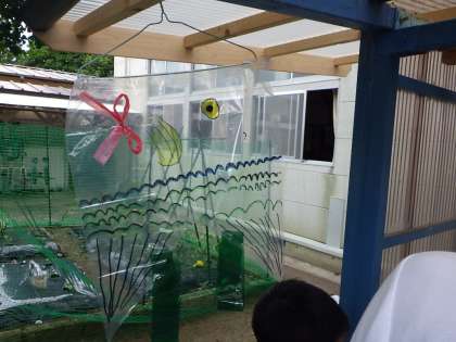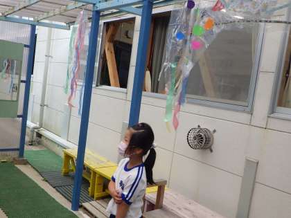 6月23日 1・2年図工「ひらひらゆれて」 公開日 2021/06/23 更新日 2021/06/23 各学年から 風にゆれる飾りをつくり、中庭にかけて鑑賞していました。ゆれながら光が透けてとてもきれいでした。