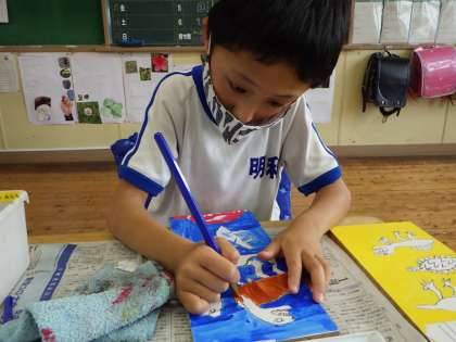 「コンコンビー玉」の絵がだんだんできてきました。絵がかけると釘打ちです。楽しみですね。