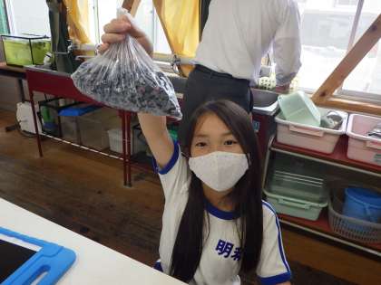 今年はなり年でしょうか。毎日、ブルーベリーが色付きます。3・4年生が喜んで収穫します。冷凍庫にストックします。
