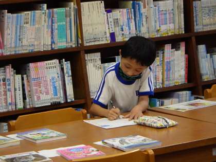 七夕読書が始まりました。ビンゴカードや頭文字読書など広報委員5人が工夫をこらした取組を用意しました。図書室には先生たちのおすすめの本が並びます。雨の日は外で遊べない分、集中して読書ができますね。