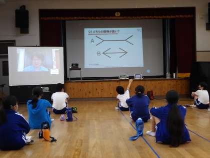 7月7日 5・6年「生き抜く力を育む事業」 公開日 2021/07/07 更新日 2021/07/07 学校の特色ある活動 集会室で、東京にいらっしゃる三谷先生とつながり、発想力を伸ばすための授業を受けました。最も印象に残った言葉は「座って悩むな、動いて考えろ」です。身の回りの物の形には必ず意味や理由があるという視点で、なぜ?なぜ?と手を動かし体験を通して、深く考えました。