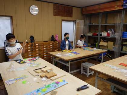 7月8日 3・4年図工の授業 公開日 2021/07/08 更新日 2021/07/08 各学年から 「トントン釘打ち、コンコンビー玉」の作品が仕上がってきました。約60本の釘をまっすぐ立つように、一生懸命打ちました。