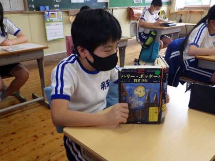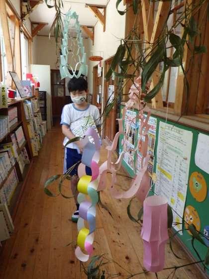 休み時間に読書をします。読書が好きな子、苦手な子…さまざまですが、頑張って読んでいます。図書室前の廊下には、子どもたちが書いた願い事の短冊がゆれています。