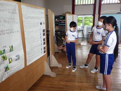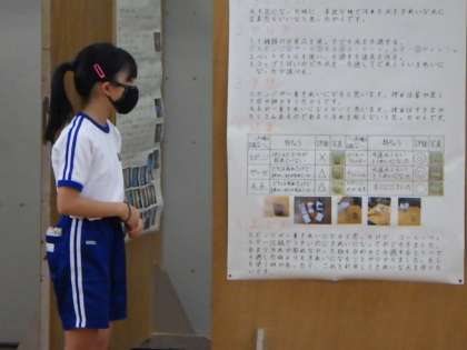 夏休みの宿題で取り組んだ科学研究について発表しました。それぞれが興味のあることを研究テーマにして、予想を立て、時間をかけて実験をしました。感心して聞き合っていました。