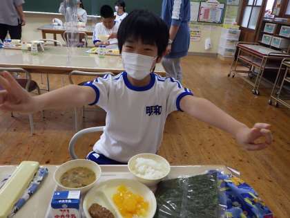 久しぶりの給食です。午前中の学習を終えて、給食を食べる子どもたちは、とても嬉しそうでした。