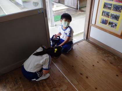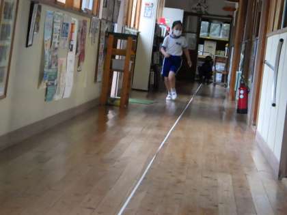 9月3日 3年算数「長さ」 公開日 2021/09/03 更新日 2021/09/03 各学年から 巻き尺を使って長さが測れるようになりました。理科室のたてと横の長さを調べた後、廊下の長さを測りました。予想を立てることで長さの見当がつくようになってきました。