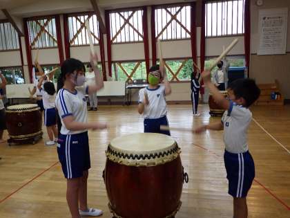 9月7日 太鼓練習 公開日 2021/09/07 更新日 2021/09/07 学校の特色ある活動 間隔を空けて太鼓練習を行いました。パートに分かれて、上級生が下級生に教えながら練習ができました。最後にみんなで合わせました。だんだん曲らしくなってきました。