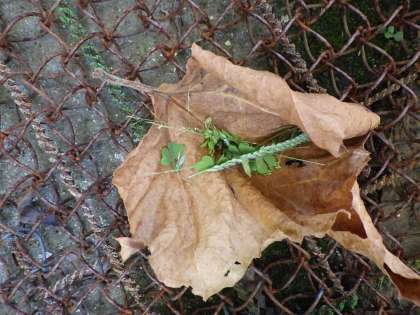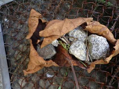 1年生の児童が職員室に来て「写真を撮ってください」と言いました。スズカケの葉はお弁当箱、石はおにぎり、草はサラダでした。身の回りにある様々なものが、子どもたちにとっては発見の連続であり宝物になるのですね。