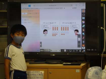 9月21日 3年算数「あまりのあるわり算」 公開日 2021/09/21 更新日 2021/09/21 各学年から 19÷4=3あまり7、19÷4=4あまり3…どちらが合っているのかな?その理由は?考えを説明する学習です。「九九がまだあるから…」助け合いながら言葉をつなぎました。