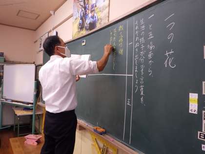 9月24日 3・4年国語の授業 公開日 2021/09/24 更新日 2021/09/24 各学年から 「一つの花」の1場面と5場面を比較して生活の様子がわかる言葉をそれぞれ抜き出しました。戦争中の場面には「配給」「敵の飛行機」…という言葉、戦争が終わってからの場面には「コスモス」「ミシンの音」…という言葉が出てきています。一語一語のもつ言葉の重みやその背景に気付きました。