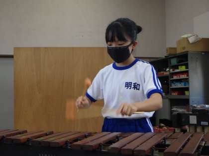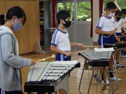 「剣の舞」のリズムや速さが身に付き、演奏を楽しめています。9人の音が合わさり大変迫力があります。