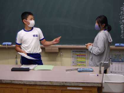 9月28日 前期最後の委員会活動 公開日 2021/09/28 更新日 2021/09/28 学校の特色ある活動 6時間目は、3〜6年生の前期最後の委員会の時間でした。国旗の上げ下ろし、健康観察板の配付、朝の放送など各委員会児童の当番活動で学校生活がまわっています。他にも、「よいところ見つけ」や「手洗いの励行」など学校生活がよりよくなるように様々な活動を頑張ってきました。今日は一緒に取り組んできた仲間と前期を振り返りました。