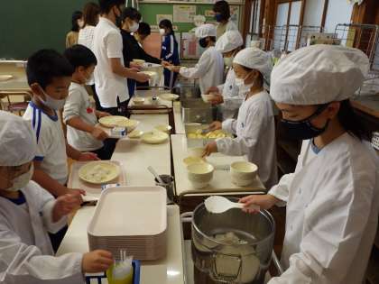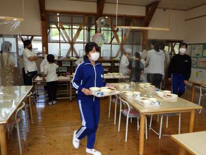 10月7日 徐々に通常の生活に 公開日 2021/10/07 更新日 2021/10/07 学校の特色ある活動 9月30日に緊急事態宣言が解除されて、今週は児童による給食当番が再開しました。今日は木曜日ですので久しぶりにフッ素洗口も実施されました。マスク着用、会食中の私語禁止、放課の後の手洗いの徹底など、感染予防対策を継続しながら学校生活を送ります。
