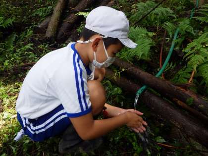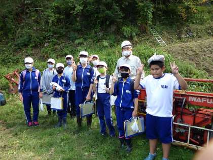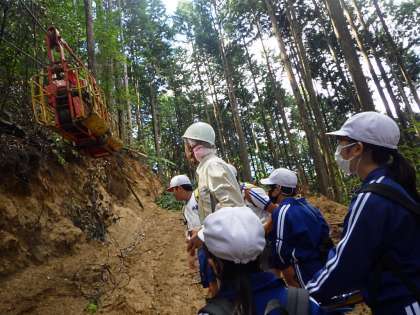 総合的な学習として、5・6年生が校外学習に出かけ、千田の後藤様に山仕事の様子を見せていただきました。太いヒノキを切り出す作業の大変さがわかりました。間伐された山は光が入ってとても明るく地面には低木が茂っていました。