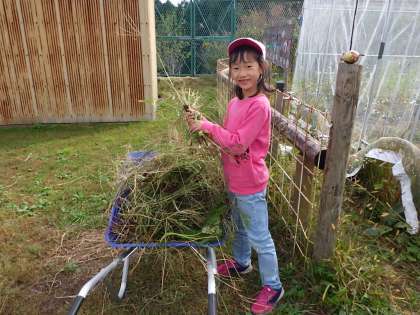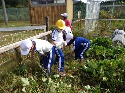 10月14日 1・2年生活科 公開日 2021/10/14 更新日 2021/10/14 各学年から サツマイモ畑の草取りをしました。草は夏の間によく伸びて大変な作業でした。みんなで協力し合い、頑張って取ることができました。